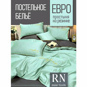 Mency Постельное белье евро Amber Ariel, Жатка, простыня на резинке, Бирюзовый/Серый