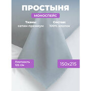 Простынь однотонная Моноспейс (аналог икеа), Серо-голубой, 1,5 спальное, 150х215 ,100% хлопок, сатин, Ecotex