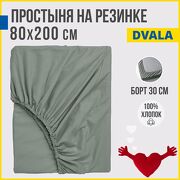 Простынь на резинке 80х200 см, Antonio Orso двала, 100% хлопок, серо-зеленый
