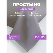 Простынь однотонная Моноспейс (аналог икеа), Серый, 1,5 спальное, 150х215 ,100% хлопок, сатин, Ecotex