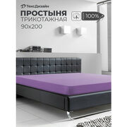 Текс-Дизайн Трикотажная простынь на резинке 90х200 Сиреневая, 100% хлопок
