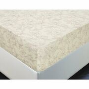 Простынь на резинке/140x200/трикотаж/натяжная/наматрасник/простыня/хлопок/АртПостель/Цветы бежевые