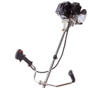 Двигатель: бензиновый, тип триммера: переносной, Мощность ДВС: 3 л.с., количество тактов двигателя: двухтактный, режущий элемент триммера: леска и нож, ширина скашивания: 38 см, конструкция штанги: прямая, плечевой ремень, количество колес: нет