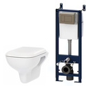 Унитаз с инсталляцией, пристенная конструкция, подвесная установка , из санфарфора, микролифт, антивсплеск, горизонтальный выпуск
