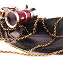 Театральный бинокль с витой цепочкой. Обладает 3-кратным увеличением и 25-миллиметровыми объективами. Корпус бинокля выполнен в элегантном дизайне черного цвета с золотистыми элементами.