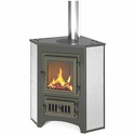 Пристенная печь-камин, закрытого типа, древесное топливо, система "чистое стекло", варочная панель