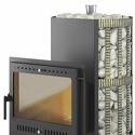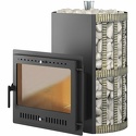 Стальная банная печь везувий Скиф 28 Панорама Ковка предназначена для прогрева парного помещения в бане и поддержания необходимой температуры во время парения. Печь скиф оборудована открытой каменкой, закладываемой камнями для бани (приобретаются отдельно). Печь изготовлена из особо прочной котловой стали 09Г2С , рассчитанной на работу при высоких температурах и давлении. Толщина стенок печи 4-6 мм.