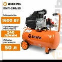 Производитель: Вихрь Модель: КМП-240/50 - Компрессор поршневой масляный - прямой привод - ресивер 50 л - давление до 8 бар - производительность 240 л/мин Описание
