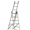 Лестница «ВИХРЬ» ЛА 3х7 может использоваться как стремянка, стремянка с выдвижной третьей секцией и приставная лестница. Выдерживает нагрузку до 150 кг. Изготовлена из алюминия с антикоррозийным покрытием. Благодаря пластиковым наконечникам ножек, лестница не скользит по поверхности. Эту компактную модель удобно хранить благодаря механизму трансформации. Поперечная траверса надёжно фиксирует лестницу на поверхности.