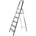 Стремянка Прочная алюминиевая рама из профиля прямоугольного сечения Высокая дуга безопасности 600 мм Большая противоскользящая платформа Идеальна для домашнего использования Профилированные противоскользящие ступеньки шириной 80 мм Защитные наконечники ножек, препятствующие скольжению стремянки Многократное клепанное соединение ступенек с рамой Характеристики: Количество ступеней: 5 Материал: алюминий МАХ нагрузка: 150 кг Вес: 3.6 кг Размеры: Длина секции со ступенями: 1.72 м Ширина секции со ступенями
