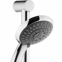 Устройство: душевой гарнитур • Ручная лейка: размер 110 мм, настройки 5 шт • Комплектация: ручной душ, стойка, шланг, крепление ручного душа, мыльница