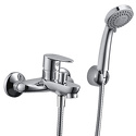 Назначение: ванна+душ • Конструкция: однорычажный • Монтаж: вертикальный • Клапан: керамический • Материал: латунь, покрытие - хром • Подводка: жесткая • Монтажные отверстия: 2 отверстия • Форма излива: традиционная • Душевая лейка в комплекте: есть • Держатель для душевой лейки: настенный держатель • Аэратор: есть • Донный клапан в комплекте: есть