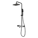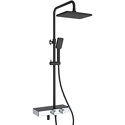 Устройство: душевая система • Смеситель: термостатический • Ручной душ (душевая лейка): размер 86 мм, настройки 3 шт • Верхний душ (тропический): размер 260 мм, настройки 1 шт • Комплектация: ручной душ, верхний душ, смеситель, стойка, шланг, крепление ручного душа, полка