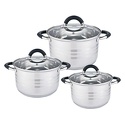 В наборе: кастрюли, 3 шт • Размер: от 16 см, до 20 см • Объем: от 2.2 л, до 4 л • Материал: сталь