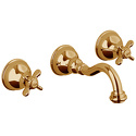 Назначение: для умывальника • Конструкция: с раздельными клапанами • Монтаж: горизонтальный • Клапан: керамический • Материал: латунь, покрытие - золото • Монтажные отверстия: 3 отверстия • Форма излива: традиционная • Душевая лейка в комплекте: нет • Донный клапан в комплекте: есть
