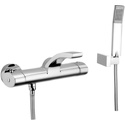 Назначение: ванна+душ • Конструкция: с раздельными клапанами • Монтаж: вертикальный • Клапан: керамический • Материал: латунь, покрытие - хром • Монтажные отверстия: 2 отверстия • Форма излива: традиционная • Термостат: есть • Душевая лейка в комплекте: есть • Держатель для душевой лейки: настенный держатель • Донный клапан в комплекте: есть