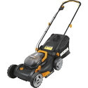 Двигатель: электрический (аккумулятор) • Аккумулятор: 40 В, не в комплекте • Покос: ширина 43 см, мешок 45 л • Вес косилки: 14.6 кг