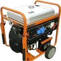 Топливо: бензин • На выходе генератора: 10 кВт, 380 В, 3 розетки • Работа: до 8.3 ч, бак 50 л • Габариты: 770x600x790 мм, 138 кг