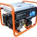 Топливо: бензин • На выходе генератора: 5 кВт, 220 B, 2 розетки • Работа: до 8.2 ч, бак 23 л • Габариты: 690x530x560 мм, 87 кг