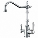Назначение: кухонный • Конструкция: однорычажный • Монтаж: горизонтальный • Материал: покрытие - бронза • Монтажные отверстия: 1 отверстие • Форма излива: традиционная • Душевая лейка в комплекте: нет • Донный клапан в комплекте: есть