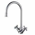 Назначение: кухонный • Конструкция: двухрычажный • Монтаж: горизонтальный • Материал: покрытие - хром • Монтажные отверстия: 1 отверстие • Форма излива: традиционная • Душевая лейка в комплекте: нет • Донный клапан в комплекте: есть