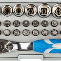 Набор: 31 шт • Головки: 6-ти гранные головки • Ключей-трещоток: 1 шт • Хранение: пластиковый кейс