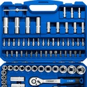 Набор: 82 шт • Головки: 6-ти гранные головки, свечные • Ключей-трещоток: 2 шт • Хранение: пластиковый кейс