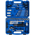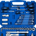 КомплектацияГоловки торцовые SUPER-LOCK 1/2″ - (10, 11, 12, 13, 14, 15, 17, 19, 22, 24, 27) - 11 шт.Головки торцовые свечные с резиновой вставкой 1/2″ - (16, 21 мм) - 2 шт.Головки торцовые FLANK 1/4″ - (8, 9, 10, 11, 12, 13 мм) - 6 шт.Вороток-отвертка 1/4″ 150 мм - 1 шт.Удлинитель для торцовых головок 1/2″ - (125, 250 мм) - 2 шт.Адаптер 3-х позиционный 3/8″F x 1/2″M - 1 шт.Шарнир карданный 1/2″ - 1 шт.Трещотка для торцовых головок с быстрым сбросом 72 зубца 1/2″ - 1 шт.Комбинированные ключи - (10, 12, 13, 14, 15, 17 мм) - 6 шт.Клещи переставные 250 мм - 1 шт.Плоскогубцы 180 мм - 1 шт.Молоток с фиберглассовой рукояткой 300 г - 1 шт.Имбусовые ключи - (1.5, 2, 2.5 мм) - 3 шт.Отвертки - (SL8 х 150 мм, SL6 х 100 мм, SL6 х 40 мм, PH2 х 100 мм, PH2 х 40 мм) - 5 шт.Адаптер для бит Hex1/4″ x SQ1/4″ - 1 шт.Биты 1/4″ х 25 мм - (PH1, PH2, PH3, PZ1, PZ2, PZ3, SL3, SL4, SL5.5, H3, H4, H5, H6, T10, T15, T20, T25, T27, T30, T40) - 20 шт.Пластиковый кейс - 1 шт.