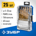 | 115230 г. Москва Каширское шоссе д. 13 корп. 2. ЗУБР ТИТАН 25шт 1-13мм сталь Р6М5, класс А, титановое покрытие, пласт.бокс, набор сверл по металлу 29617-H25 Доставка — тК СДЭК или Деловые линии. Из Москвы. | 5 964 руб. | В магазин | |