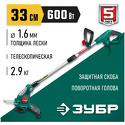 Производитель: ЗУБР Модель: Мастер ТСН-33-600 - электрический - 600 Вт - оснастка: леска Описание