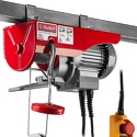 Устройство: лебёдка • Привод: электрический, канатный • Грузоподъемность: 125 кг, с блоком 250 кг • Подъем: 12 м, с блоком 6 м • Длина каната/цепи: 12 м