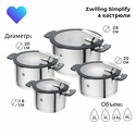 Производитель: Zwilling Модель: Simplify 66870-004 - В наборе: кастрюли, 4 шт - Размер: от 16 см, до 24 см - Объем: от 2 л, до 6 л Описание